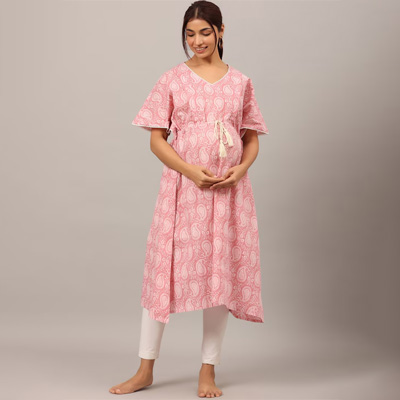 Women Printed Maternity Pure Cotton Flared Sleeves Anarkali Kurta