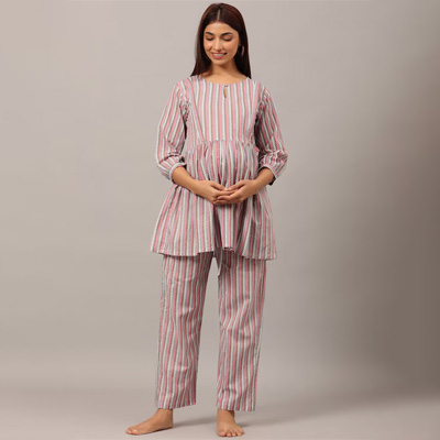 Printed Pure Cotton Maternity & Nursing Maxi Nightdress