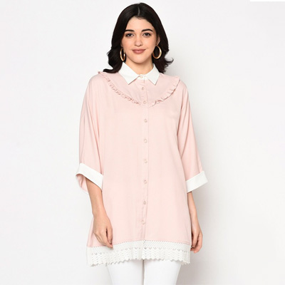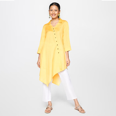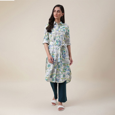 White & Navy Blue Pure Cotton Geometric Self Design Tunic