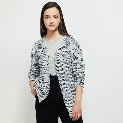 Women Grey & White Printed Shrug