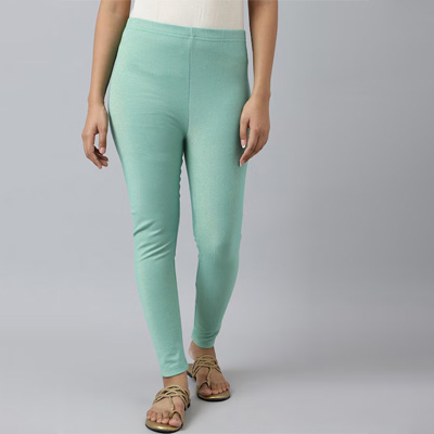 Women Sea Green Solid Ankle length Leggings