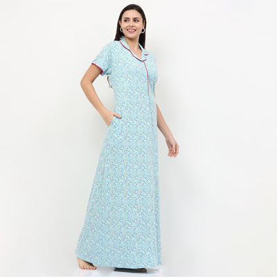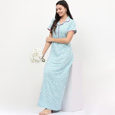 Absolute comfort and style by getting your hands on this nightdress. Features Round neck Short sleeves Maxi Size & Fit The model (height 5'8) is wearing a size S Material & Care Material: 12% Cotton, 37% Rayon, 51% Polyester Delicate Machine Wash"