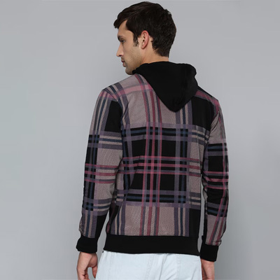 "Sleeve Length : Long Sleeves Neck : Hood Pattern : Checked Length : Regular Type : Pullover Print or Pattern Type : Checked"