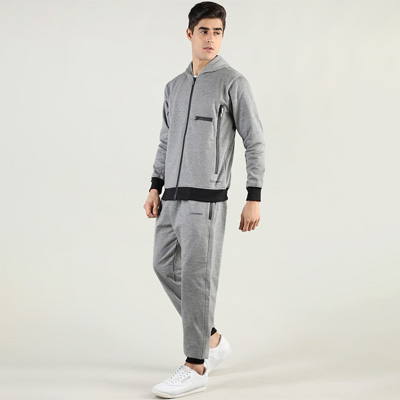 "Light grey Solid tracksuit Light Grey Solid track jacket, has a hooded neck with zip closure, two pockets and long sleeves A pair of light grey Solid mid-rise track pants, has an elasticated waistband with a slip-on closure Size & Fit The model (height 5'8"") is wearing a size S Material & Care Fleece Machine wash Do Not Bleach"