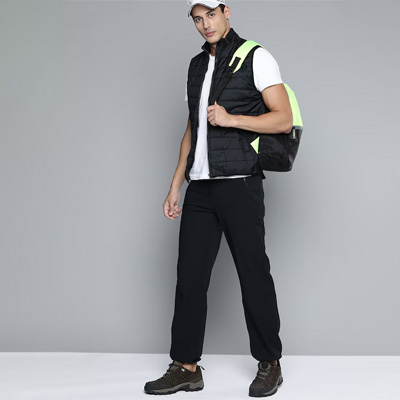 "A pair of navy blue solid knitted mid-rise track pants with striped detail, has an elasticated waistband with drawstring fastening, two insert pockets
