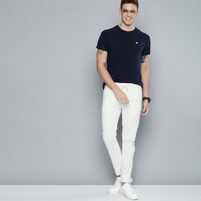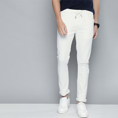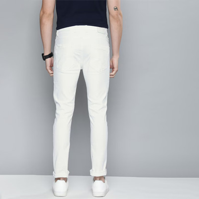 "White light wash 5-pocket mid-rise jeans, clean look, no fade, has a button and zip closure, and waistband with belt loops Size & Fit Skinny Fit Stretchable The model (height 6') is wearing a size 32 Material & Care 98%cotton and 2% elastane Machine-wash"