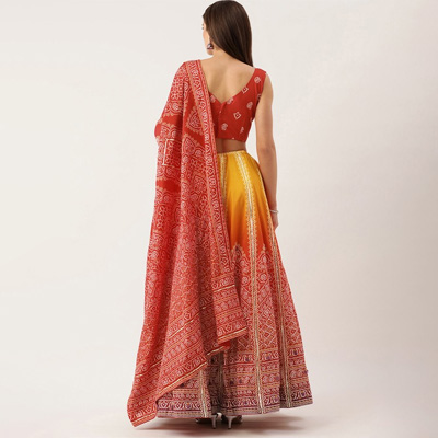 "Multicoloured solid lehenga choli with dupatta, Multicoloured solid unstitched blouse, has a v-neck, sleeveless, multicoloured solid semi-stitched lehenga, has drawstring closure, flared hem Multicoloured printed dupatta, solid border Size & Fit Dupatta Length :- 2.4 meter,Lehenga Length :- 41 inch,Blouse Length :- Unstitch 1 meter Material & Care ,Dry Clean only"