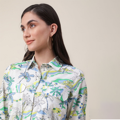 "Fabric :Cotton Weave Type :Machine Weave Pattern :Printed Neck :Shirt Collar Sleeve Length :Long Sleeves Occasion :Casual Main Trend :Floral Print Wash Care :Machine Wash"