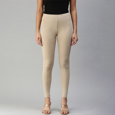 "Beige ankle-length leggings, has an elasticated waistband and slip-on closure Size & Fit The model (height 5'8"") is wearing size S Material & Care 95% Cotton 5% Elastane Machine wash"