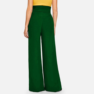 "Green knitted palazzos Solid Opaque Wide leg fit Length: regular Knitted polyester fabric Size & Fit Wide Leg fit The model (height 5'8) is wearing a size S Material & Care Material: Crepe Machine Wash"