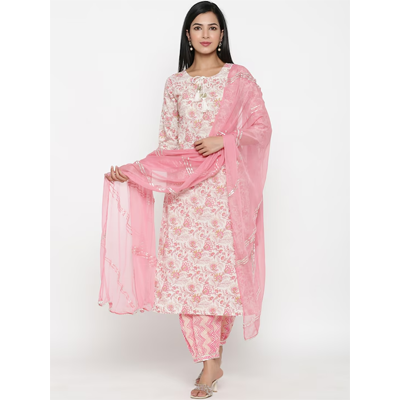 "Off white embroidered Kurti with Salwar with dupatta Kurti design: Floral embroidered Straight shape Regular style Round neck, three-quarter regular sleeves Calf length with straight hem Pure cotton machine weave fabric Salwar design: Printed Salwar Drawstring closure Size & Fit The model (height 5'8) is wearing a size S Material & Care GENTLE WASH"