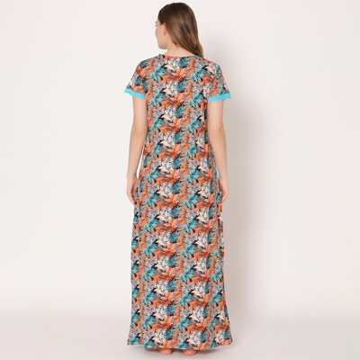 "This nightdress is crafted to redefine comfort. Its ultra-feminine look and feel is sure to appeal your unique taste. Features V-neck Short sleeves Maxi Size & Fit The model (height 5'8) is wearing a size XXL Material & Care Cotton Blend Machine Wash"