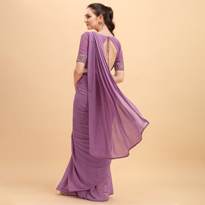 Women Purple Solid Saree with Embellished Belt Size & Fit Saree: 5.50 mtr, Blouse Piece: 1 mtr Material & Care Saree:Georgette,Blouse:Georgette,Dry Clean