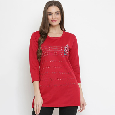 "Fabric : Cotton Neck : Round Neck Pattern : Solid Sleeve Length : Three-Quarter Sleeves Sustainable : Regular Type : Regular Wash Care : Machine Wash"