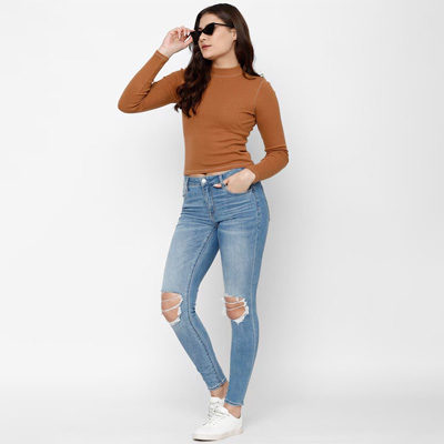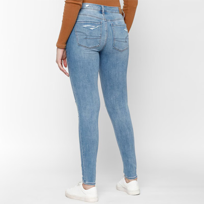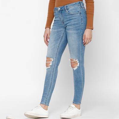 "Move from day to night with ease when you don these stylish jeans. Designed with a high-rise waist and regular length, these jeans are a good choice. Stunning blue colour Flared fit High-rise waist Regular length Graduated flared Trend Alert The graduated flare lends an elevated stylish edge to your flared and wide-legged denim. It gives you a super-sleek silhouette and suits all body types. Size & Fit Fit: Skinny Flared Stretchable The model (height 5'8) is wearing a size 28 Material & Care 99% Cotton, 1% Elastane Machine wash"
