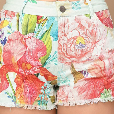 "Waist Rise :Mid-Rise Length :Above Knee Type :Hot Pants Closure :Slip-On Print or Pattern Type :Floral Fit :Regular Fit Number of Pockets :2 Occasion :Casual"