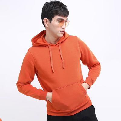 "Orange solid sweatshirt has a hooded, 2 kangaroo pocket pockets, long sleeves, straight hem Size & Fit The model (height 6') is wearing a size M Material & Care Polyester Machine wash"